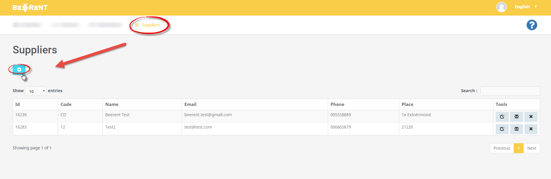 Spisak Vaših supplier-a moguće je vidjeti kada na Vašem BeeRent računu pritisnete na „Suppliers“.